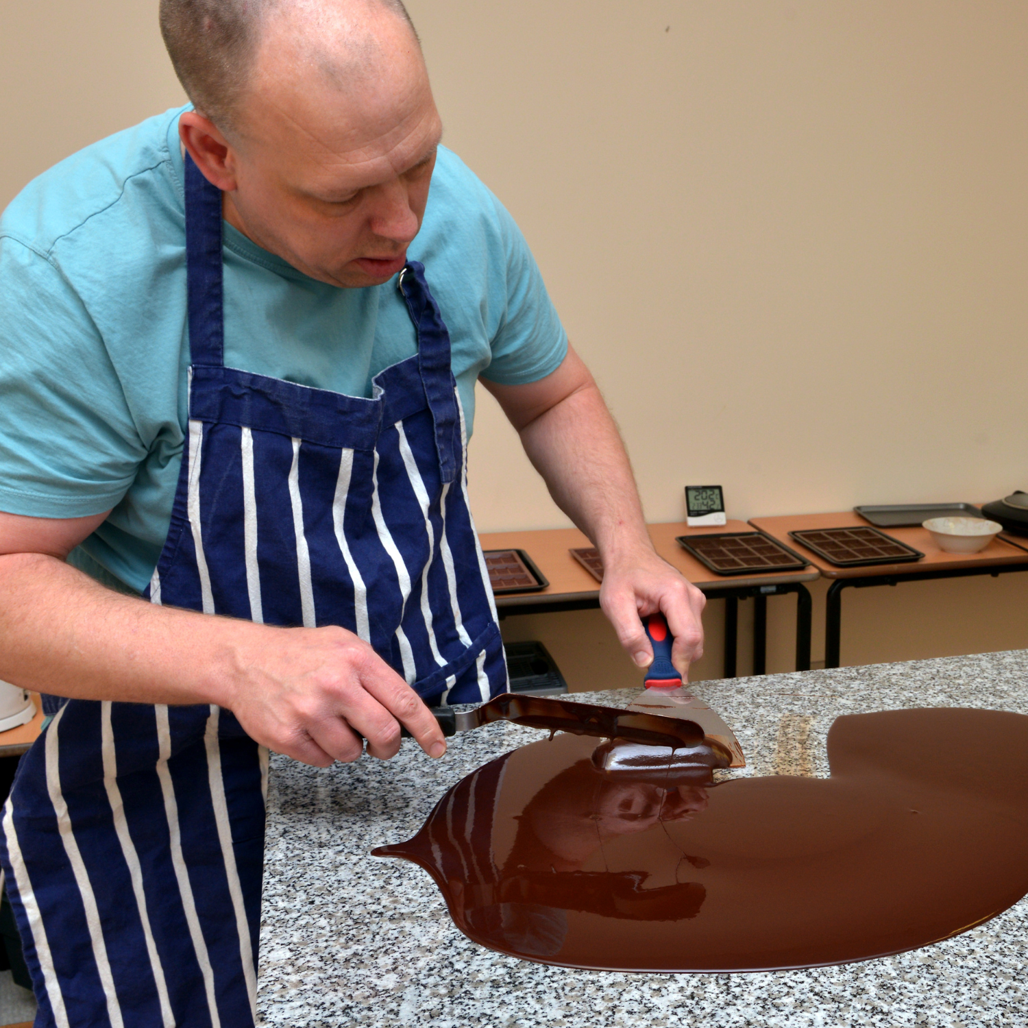 One day, Simon (a self confessed technophobe) was searching for music on YouTube and stumbled across someone traditionally hand tempering chocolate on a marble slab.